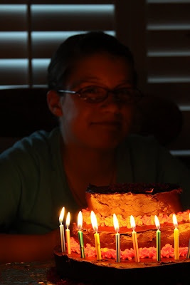 I just liked the effect of the candles and her in the background here. She is my sweetie and I love her to death! Happy Birthday Ash-Bash!!!